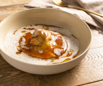 Ravioli recheado com costela de boi e espuma de limão O ravioli recheado com costela de boi e espuma de limão é um sofisticado prato principal de massa fresca recheada com uma carne macia e suculenta! 4 h 40 min LER RECEITA