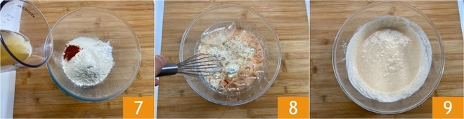 Adicione também a cerveja 7 e misture com um batedor 8 até obter uma massa lisa 9. Coloque na geladeira até o momento de usar.