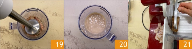 Bata 19 até obter um molho tártaro liso e homogêneo 20. Corte finamente o lombo 21.