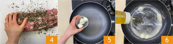 Massageie bem a carne com as mãos para temperá-la de todos os lados 4. Em uma caçarola, aqueça a manteiga 5 junto com um fio de óleo 6.