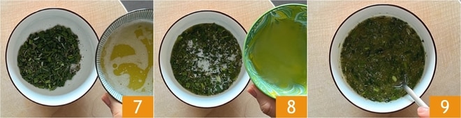 Junte a manteiga derretida 7 e o suco de limão filtrado 8, depois misture bem 9.