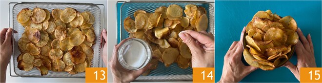 Uma vez prontas 13, salgue 14 e sirva suas batatas na airfryer bem quentes 15.