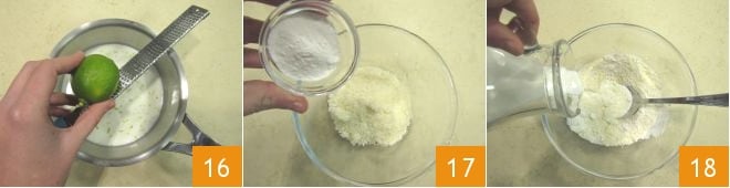 E a casca de limão 16. Deixe aquecer em fogo baixo até ferver. Enquanto isso, em uma tigela, misture o parmesão e o amido 17 e adicione também o creme de leite 18.