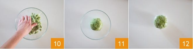 Trabalhe tudo com as mãos 10 até obter uma massa homogênea 11. Envolva-a em filme plástico e leve à geladeira por cerca de dez minutos 12.