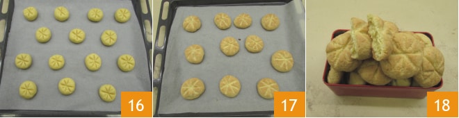 Assim, será criado o motivo decorativo que lembra os gomos da laranja 16. Agora, asse os biscoitos de laranja em forno estático pré-aquecido a 180°C por cerca de 25 minutos. Uma vez prontos, retire do forno 17 e deixe esfriar antes de servir 18.