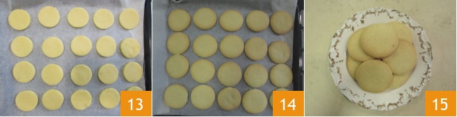 Transfira os biscoitos para uma assadeira forrada com papel manteiga 13 e asse em forno estático pré-aquecido a 170°C por cerca de 15 minutos. Retire os biscoitos do forno e deixe esfriar antes de servir 15.