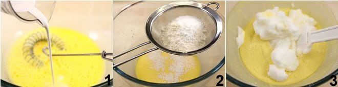 Para preparar os blinis, comece com a preparação da massa base: separe a gema da clara e bata a gema em uma tigela, adicione o leite e o creme de leite aos poucos, misturando bem para evitar a formação de grumos 1. Em seguida, adicione a farinha e o fermento peneirados e continue misturando 2. Deixe a massa descansar por cerca de uma hora. Depois, adicione à massa a clara batida em neve com uma pitada de sal, tomando cuidado para não desinflá-la 3.