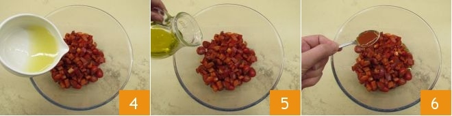 e tempere com o suco de limão 4, o óleo 5, sal, pimenta e tabasco 6