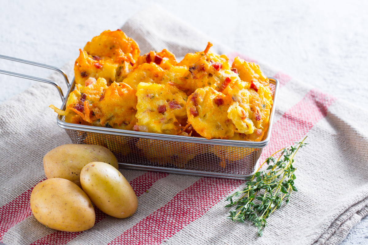 Alguém disse Frittelle Luna-Park? Aqueles Bolinhos de Maçã nos enlouquecem, mas é igualmente impossível resistir à versão salgada Bolinho de abobrinha ou, como mostramos hoje, de batatas! Os bolinhos de batata e speck são petiscos fritos deliciosos, o perfeito aperitivo finger food para seus aperitivos caseiros. Crocantes e dourados por fora e macios por dentro, esses bolinhos são ótimos degustados sozinhos, mas ainda melhores se mergulhados em algum molho aromático caseiro, como a maionese tradicional ou um creminho expresso à base de iogurte grego.