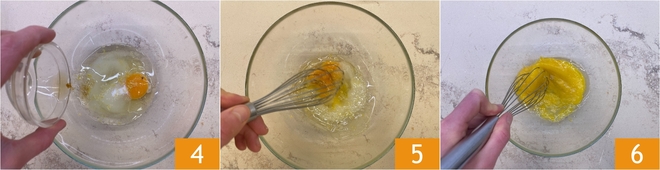 Para preparar os bolinhos de chuva na fritadeira sem óleo, em uma tigela coloque o ovo, o açúcar 1, a casca de limão ralada 2 e o óleo 3.<\/p>