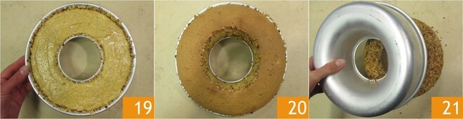 Asse em forno estático pré-aquecido a 170° por cerca de 40 minutos 19. Verifique o cozimento com um palito, depois retire do forno e deixe esfriar completamente na forma 20 antes de desinformar o bolo em um prato de servir 21.