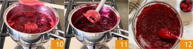 Cozinhe por cerca de dez minutos 10, bata com um mixer de mão 11 e passe por uma peneira para eliminar as sementes 12.