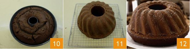 Depois do tempo indicado, verifique a cozedura do bolo fazendo o teste do palito: se, após perfurar a massa, ele sair seco, o bolo de café está pronto para ser retirado do forno 10. Uma vez completamente esfriado à temperatura ambiente, vire-o sobre uma grade 11 e polvilhe com açúcar de confeiteiro; depois coloque-o em um prato de servir ou em um suporte para bolos e o seu bolo de café 12 está pronto para adoçar cada momento do seu dia!