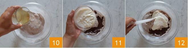 Despeje o óleo 10, o iogurte 11 e misture com uma espátula 12
