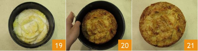 e asse o bolo em forno estático pré-aquecido a 180° por 75 minutos na prateleira do meio. Depois de assado, retire o bolo de coco e abacaxi do forno 20, deixe esfriar um pouco, depois desenforme e sirva 21!
