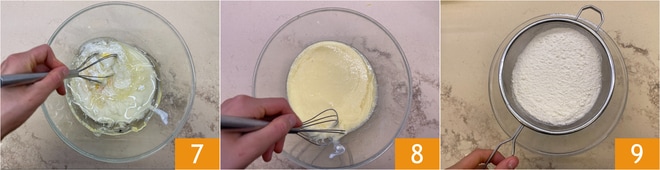 Mexa 7 até obter uma mistura homogênea 8. Em outra tigela, peneire a farinha 9.