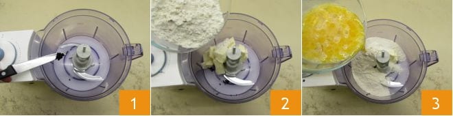 Para preparar o bolo de iogurte, primeiro certifique-se de que todos os ingredientes estejam a uma temperatura de 24°. Neste ponto, equipe-se com um liquidificador com lâminas bastante potente e espaçoso. Coloque no recipiente primeiro as sementes da vagem de baunilha 1, a manteiga em cubos, a farinha 2, os ovos 3,