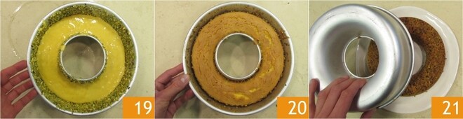 Asse em forno estático pré-aquecido a 170° por cerca de 40 minutos 19. Verifique o cozimento com um palito, depois retire do forno e deixe esfriar na forma 20. Uma vez morno, vire o bolo no prato de servir e deixe esfriar completamente 21.