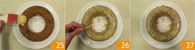 Pincele a superfície do bolo com a cobertura 25, depois decore com as cascas de laranja cristalizadas 26. Seu bolo de laranja está pronto para ser servido 27!