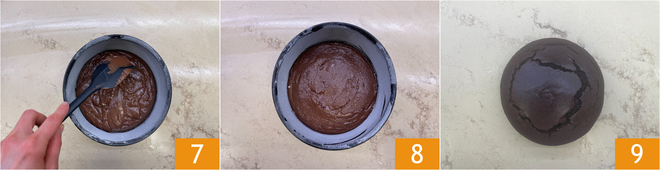 Misture e transfira a massa para uma forma redonda de 17 cm, untada e enfarinhada, e nivele bem na superfície 7. Asse em forno pré-aquecido a 160º por cerca de 40 minutos 8. Verifique o cozimento com um palito, depois retire do forno e deixe esfriar 9.