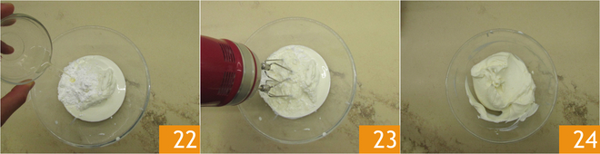 Adicione também um pouco de suco de limão 22. Bata brevemente com a batedeira elétrica o creme 23 24.