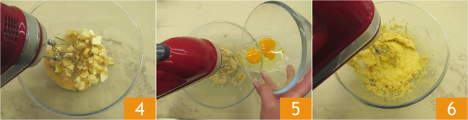 Bata com os batedores 4. Após obter um creme, adicione, uma de cada vez, os ovos 5 e bata, após cada adição, por 3-4 minutos 6.