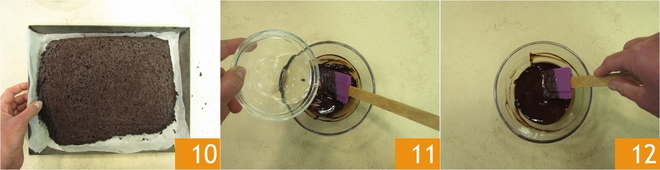 Asse em forno estático pré-aquecido a 180ºC por 10-15 minutos. Então, retire do forno 10 e deixe esfriar. Quando o crumble estiver em temperatura ambiente, derreta o chocolate amargo em uma tigela, adicione o óleo vegetal 11 e misture rapidamente para emulsionar 12.