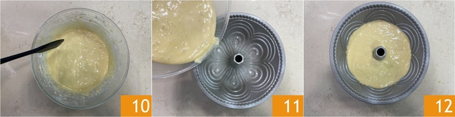 Você deve obter uma mistura homogênea e cremosa 10. Despeje a massa em uma forma para ciambellone de 24 cm de diâmetro e 10 cm de altura, previamente untada e enfarinhada 11, então asse em forno estático pré-aquecido a 180°C por cerca de 40 minutos 12.