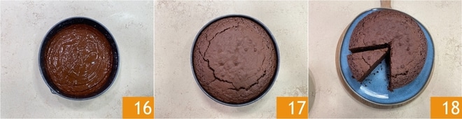 Despeje a mistura em uma forma untada de 22 cm 16. Asse em forno estático pré-aquecido a 165°C por 50 minutos. Sempre faça o teste do palito antes de retirar o bolo do forno 17. Deixe esfriar e sirva 18.