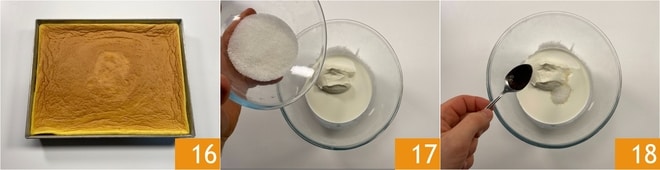 Deixe esfriar completamente 16. Prepare o creme: em uma tigela, despeje o creme de leite, o mascarpone e o açúcar 17. Aromatize com o extrato de baunilha 18.
