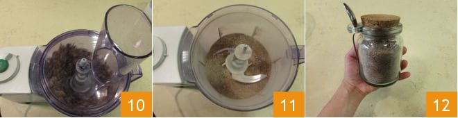 Bata novamente 10 até obter um pó 11. Transfira então para uma tigelinha e seu caldo granulado estará pronto para uso 12.