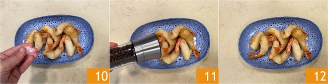 Tempere com sal 10 e pimenta a gosto 11 e sirva imediatamente seus camarões em tempura 12!