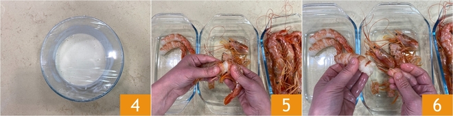 Cubra com filme plástico e deixe a massa descansar na geladeira por 30 minutos. Enquanto isso, Como limpar os camarões separando a cabeça do corpo, mas mantendo o rabo preso 5, em seguida, faça um corte nas costas e remova o fio interno 6.