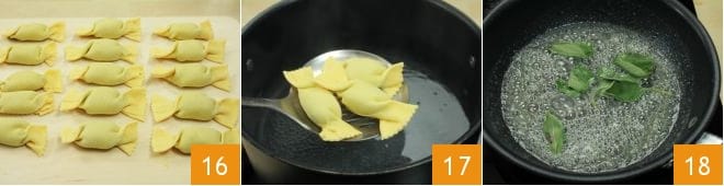 Depois de modelar todas as balas, coloque-as em uma tábua enfarinhada e deixe secar por cerca de uma hora 16. Cozinhe a massa em água salgada fervente por pelo menos 5 minutos 17, enquanto isso, em uma frigideira, doure as folhas de sálvia na manteiga derretida 18. Uma vez cozidas, escorra as balas e tempere com a manteiga e a sálvia e com parmesão ralado a gosto. Suas balas de ricota e espinafre estão prontas para serem servidas!