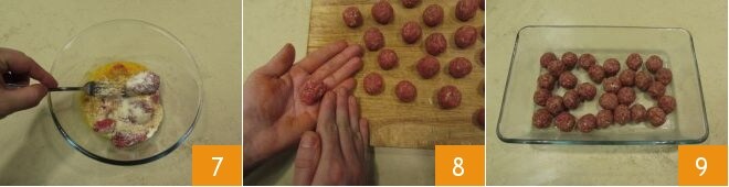 e misture bem tudo 7, até obter uma massa macia, mas compacta. Forme almôndegas de cerca de 10 gramas cada 8 (dessa forma, você deverá obter cerca de 30) e mantenha-as na geladeira cobertas com filme até que o caldo esteja pronto 9.