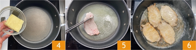 Derreta a manteiga em uma panela 4, depois coloque o lombo 5 e doure em fogo médio-alto por alguns minutos de cada lado 6.