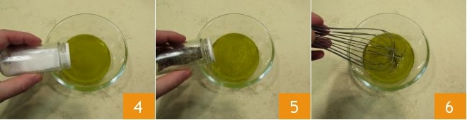 o sal e a pimenta moída (4-5), então emulsione o molho com a ajuda de um batedor 6.