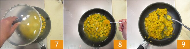 Salgue a gosto e cubra com a tampa: o cozimento nesta fase continua por cerca de 10 minutos em fogo baixo 7. Na metade do cozimento, você pode temperar com cúrcuma em pó 8. Quando o cozimento estiver completo, remova o alho 6.