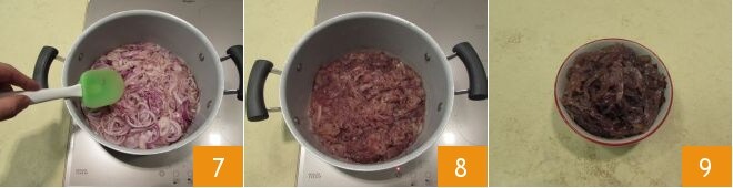 Cozinhe por cerca de uma hora em fogo moderado 7, mexendo de vez em quando com delicadeza para não desmanchar as cebolas. Ao final do cozimento, verifique a temperatura com um termômetro de cozinha, deve chegar a 108°; a mistura estará escurecida e o líquido quase todo evaporado 8. Suas cebolas de Tropea caramelizadas estão prontas, coloque-as em uma tigela e saboreie para acompanhar carnes ou em crocantes torradas de pão 9!