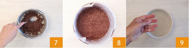 Transfira a mistura para a forma e compacte-a com as costas de uma colher 7. Coloque para endurecer na geladeira por pelo menos 30 minutos 8. Passe para o creme: mergulhe a gelatina em água fria por cerca de dez minutos 9.