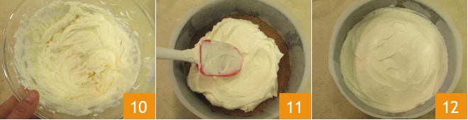 Você deve obter um creme liso e sem grumos 10. Retire a base do freezer, despeje o creme 11, nivele bem a superfície com uma espátula e leve à geladeira por cerca de 4 horas 12.
