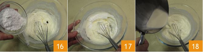 e, por fim, o açúcar de confeiteiro 16. Misture cuidadosamente 17. Neste ponto, você pode incorporar também o creme de leite 18.