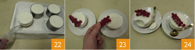 e depois o papel acetato ou manteiga 22. Decore cada sobremesa com um raminho de groselhas frescas 23 e está pronto o seu cheesecake de prosecco: agora é só saborear 24!