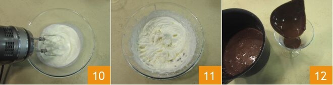 Prepare o chantilly com a batedeira (10-11) e coloque-o em um saco de confeitar, depois despeje o chocolate quente nos copos ou xícaras 12,