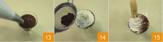 decorando com um pouco de chantilly 13 e uma pitada de cacau 14. Acompanhe o chocolate quente com café com um biscoito champanhe 15!