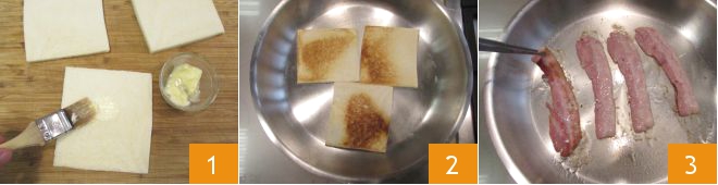 Feche com outra fatia de pão (a parte com maionese deve ficar em contato com as fatias de bacon) 13 14. Espalhe maionese no lado superior do pão 15.