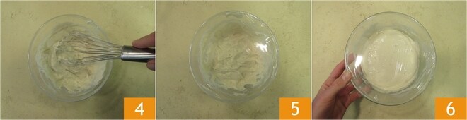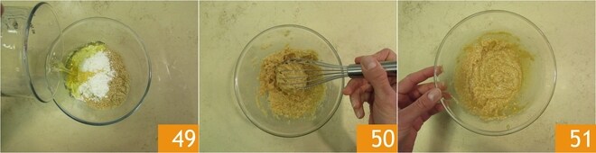 a clara de ovo 49 e trabalhe tudo com um batedor por alguns minutos 50, até obter uma cobertura homogênea 51.