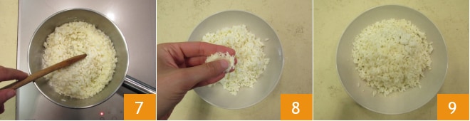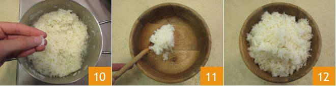 Uma rápida mexida 7 e despeje a água quente 8. Cubra imediatamente com a tampa e cozinhe por cerca de 10 minutos sem mexer 9.