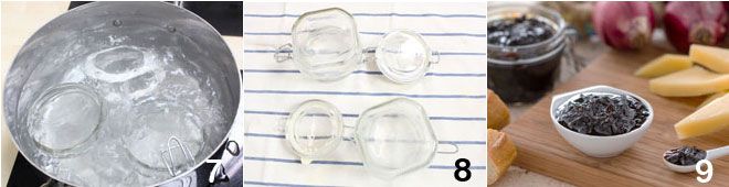 Agora cuide da sanitização dos potes (7-8): seguindo as instruções do Ministério da Saúde indicadas no final da receita. Coloque a compota de cebolas de Tropea ao balsâmico nos potes, cuidando para deixar 2-3 cm de espaço da borda, em seguida, feche bem os potes. Uma vez colocada a compota nos potes, feche e passe para a fervura, ou seja, a pasteurização, sempre seguindo as instruções das diretrizes ministeriais. Finalmente, verifique se o vácuo foi formado corretamente: se ao pressionar a tampa NÃO ouvir o "click clack", significa que o vácuo foi feito corretamente. Uma vez pronta, a compota de cebolas de Tropea ao balsâmico deve ser armazenada em um local fresco e seco e, no momento de servi-la, coloque-a em uma tigela e acompanhe com um bom queijo maturado 9.