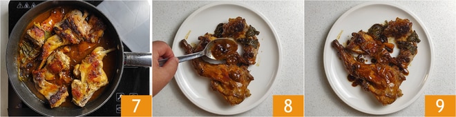 Quando a carne estiver cozida, retire a tampa, adicione meio copo de água e continue a cozinhar por mais 10 minutos, ou até que se forme um fundo de cozimento suficientemente denso 7. Sirva e adicione sobre a carne uma generosa colher do fundo de cozimento 8. O coelho na panela está pronto para ser servido 9.